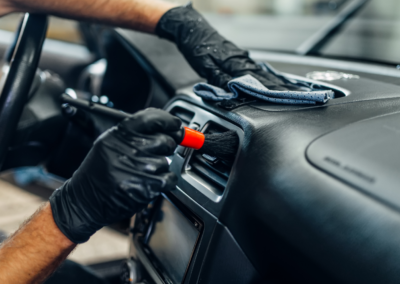 Refined cabin restoration eliminating dust, odors, and wear for a like-new experience. Includes thorough high-powered vacuum, detailed wipe-down of all surfaces, streak-free interior window cleaning, precision vent/crevice dusting, deep shampoo extraction for floor mats/carpets, and luxurious conditioning/dressing for leather, dashboard, and console with UV protection.