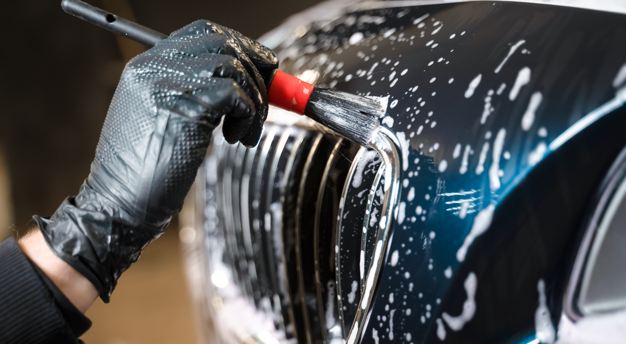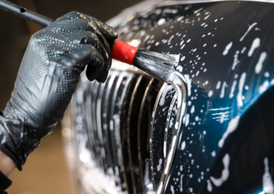 Signature exterior transformation with hand-crafted protection and flawless finish. Includes precision deep wheel cleaning (face & barrel), pre-rinse, full contact hand wash, comprehensive vacuum, meticulous wipe-down, crystal-clear windows, hand-applied spray wax for depth/slickness/hydrophobicity, and premium tire dressing for rich satin-black finish.